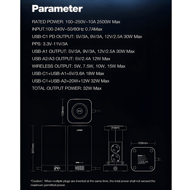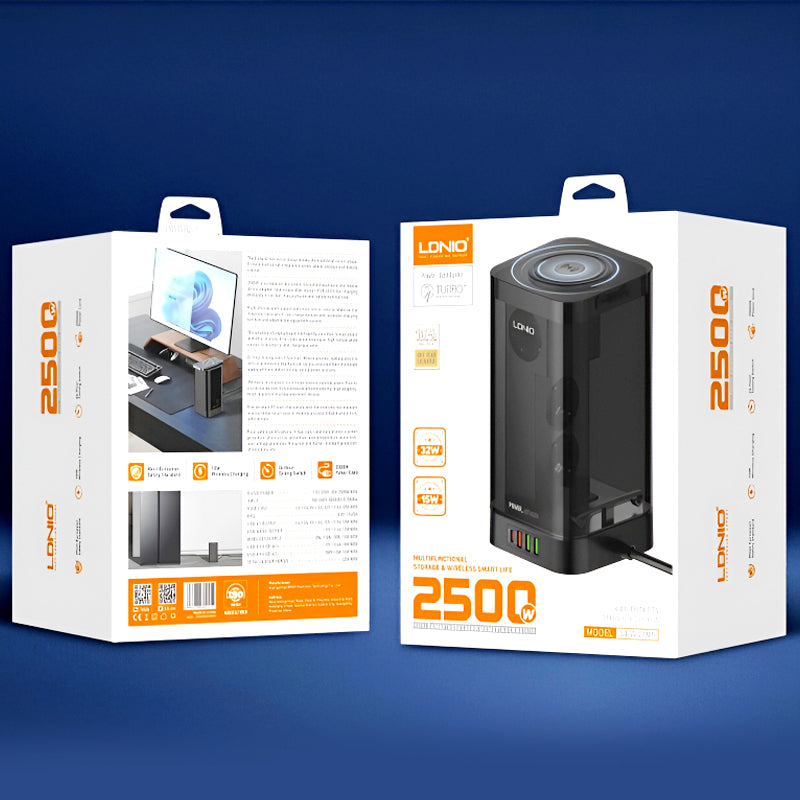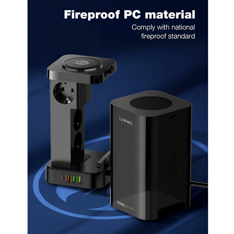 The LDNIO SEW4485 is a high-performance, tower-style power strip designed to provide efficient power management and smart charging for multiple devices. With 4 EU Schuko outlets, multiple USB fast-charging ports, and wireless charging, it is an ideal solution for homes, offices, and workstations. The innovative storage design allows users to conceal sockets and cables under a removable cover, keeping spaces tidy and organized.
