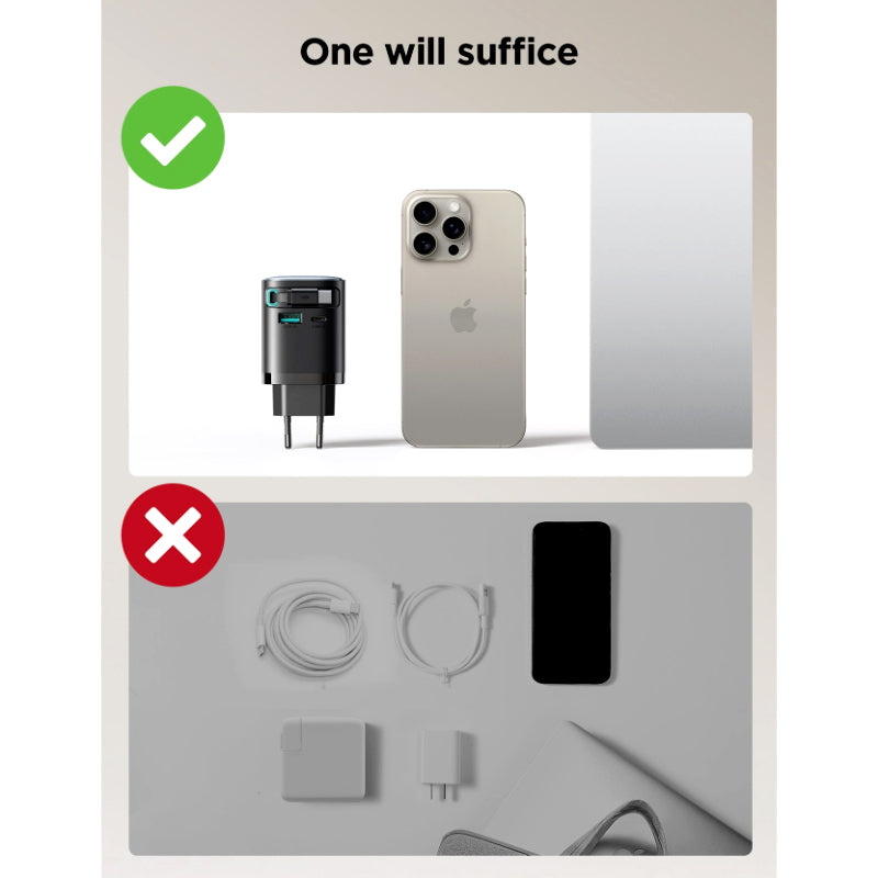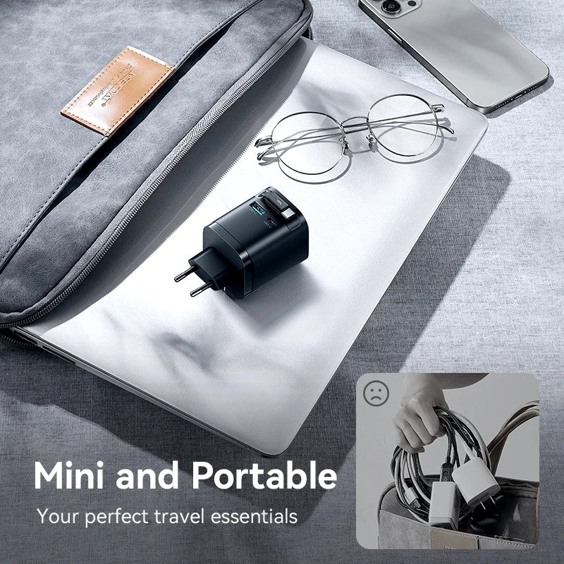 The latest GaN (Gallium Nitride) technology enhances efficiency, reduces heat, and makes the charger smaller and more durable. Its universal compatibility allows seamless charging for various devices, including MacBooks, iPads, iPhones, Android devices, smartwatches, and more. The integrated retractable cable eliminates the need to carry extra cords, keeping your setup neat and organized.