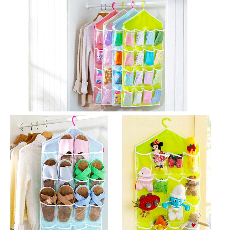 Maximize your storage space with this 16-pocket multifunctional hanging organizer, designed to keep your belongings neatly sorted and easily accessible. Crafted from durable polyester fabric and transparent PVC, this organizer is perfect for storing baby clothes, socks, underwear, accessories, cosmetics, toys, and other small items. Its transparent pockets allow for quick visibility, while the space-saving design enables hanging on doors, walls, or inside wardrobes. Ideal for bedrooms, bathrooms, closets, and offices, this organizer helps maintain a tidy and clutter-free environment.